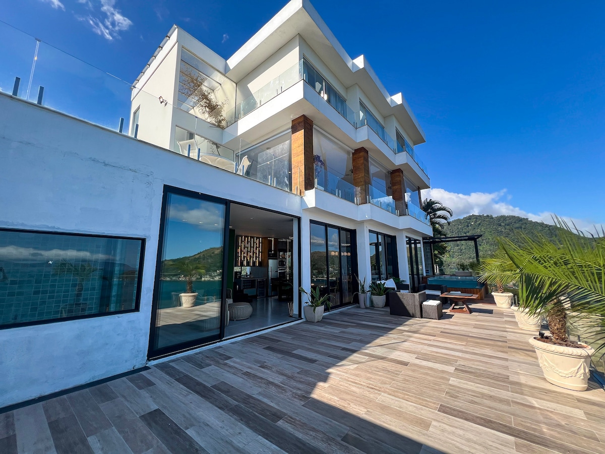 Casa exclusiva de alto padrão no condomínio Portogalo em Angra com vista deslumbrante para Ilha Grande, piscina com borda infinita, área gourmet com churrasqueira, forno de pizza, cervejeira, sinuca. São 5 suítes com ar-condicionado e Smart TV, sala ampla com TV 75”, Wifi/Starlink e cozinha completa. Condomínio seguro. Serviços extras como camareira, cozinheira, lanchas e espaço VIP com telão também disponíveis. ⚠️Importante: Pedimos que leiam a seção de regras antes de concluir a reserva.