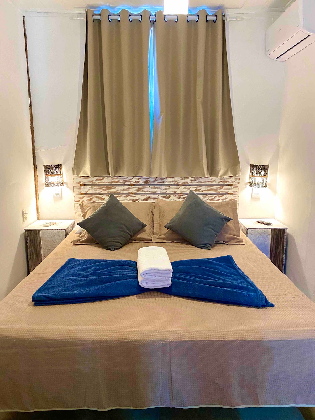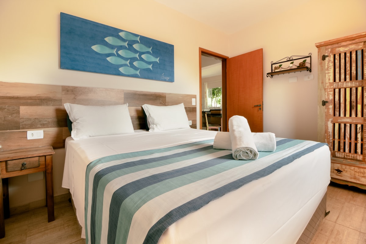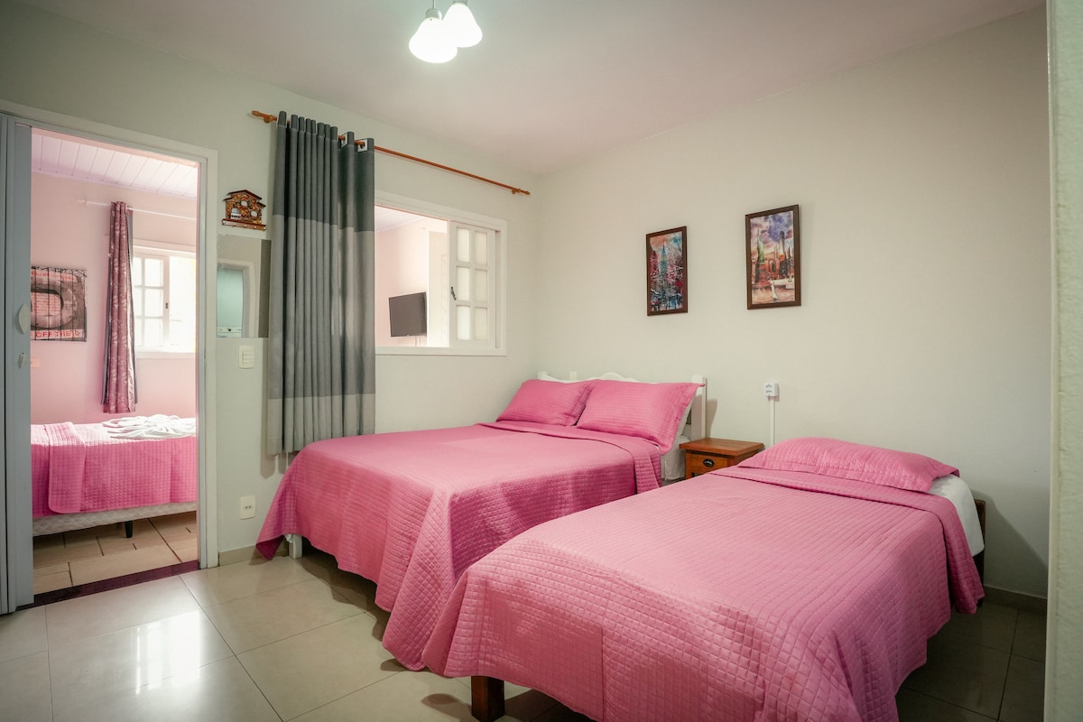 O Quarto Luxo é equipado com cama Queen Size, Smart TV 32″, ar-condicionado, frigobar, banheiro privativo, amenities e roupa de cama e banho. Acomoda 3 pessoas. Os quartos possuem rede de descanso e foram decorados com muito capricho para trazer todo aconchego.