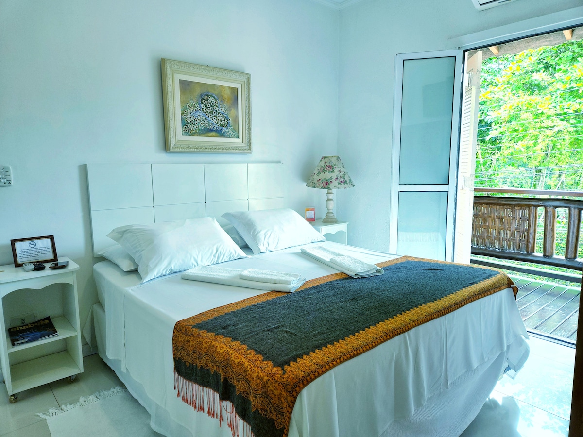 Equipado com uma cama Queen Size (ou duas de solteiro) e um sofá cama, o quarto oferece conforto com Ar-Condicionado Split, TV de LED, frigobar, varanda privativa, ventilador de teto, armário e banheiro privativo completo. Acomoda até 3 pessoas.