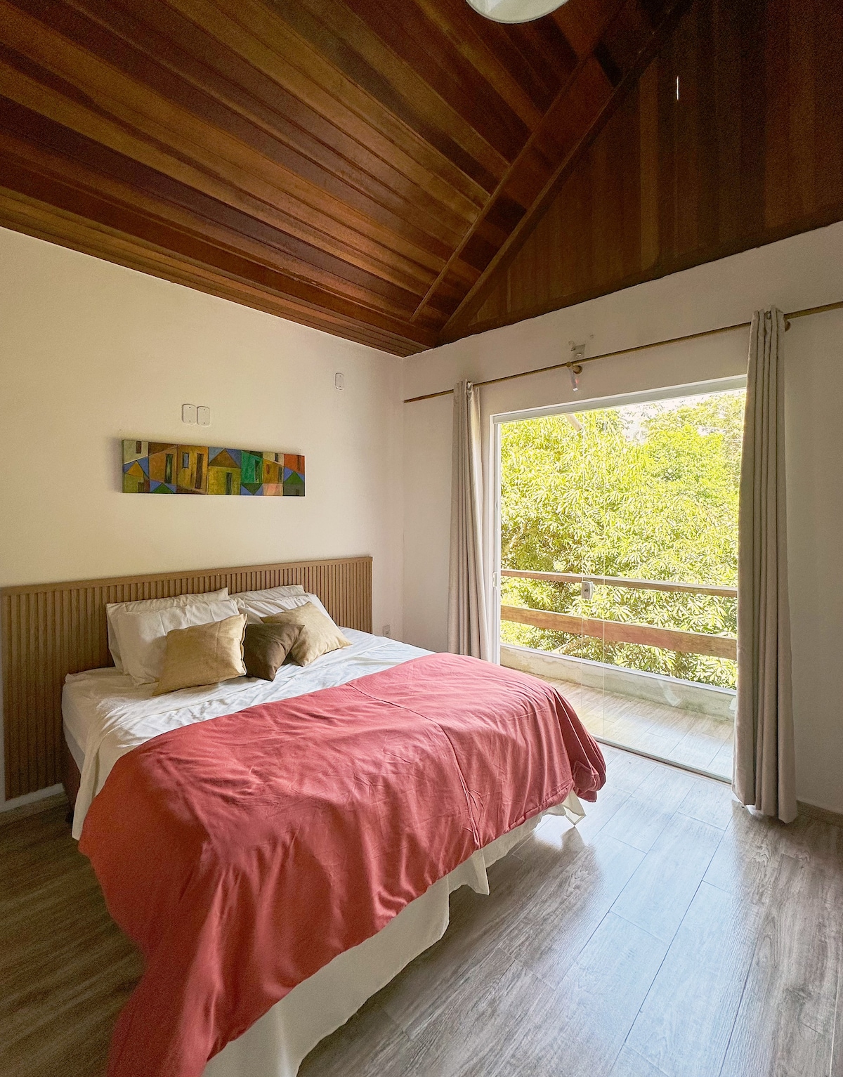 Relaxe neste espaço calmo e cheio de estilo. Esta suíte fica em uma linda casa estilo colonial situada a 100 metros da Praia da Feiticeira. Contando com uma área de quase 2 mil metros quadrados, possui um maravilhoso jardim e uma piscina incrível, além de uma deliciosa cozinha caipira com churrasqueira, forno de pizza e fogão a lenha.