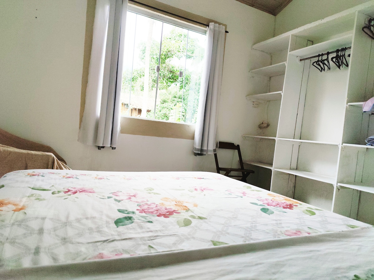Casinha rústica e aconchegante com vista deslumbrante. Acordar e olhar o mar sem levantar a cabeça do travesseiro é impagável. E sem borrachudos! Tem muitos na ilha, poucos por aqui. Ideal para 2 pessoas (acomoda até 3) é confortável e prática. Banheiro amplo, cozinha bem equipada para boas refeições apreciando o belo visual, sala com sofás de tecido e o deck de madeira completam o aconchego. É perfeita para relaxar e apreciar o cenário. Não é isolada, mas é exclusiva para quem nela estiver.