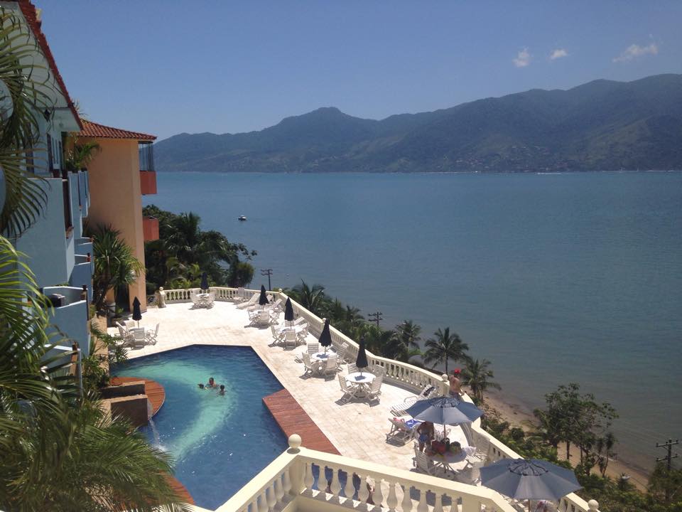 Hotel de frente para praia, no Perequê, centro novo de Ilhabela. Flat tipo estúdio acomoda 4 pessoas com conforto, ar condicionado, ventilador de teto, aquecimento central, cozinha compacta completa. Ampla área de lazer com piscinas adultos e crianças, sauna, academia, salão de jogos quadra de tênis, serviço de quarto, estacionamento, restaurante, serviço de bar/restaurante na piscina, completo Café da manhã (Não incluso, consulte valor).