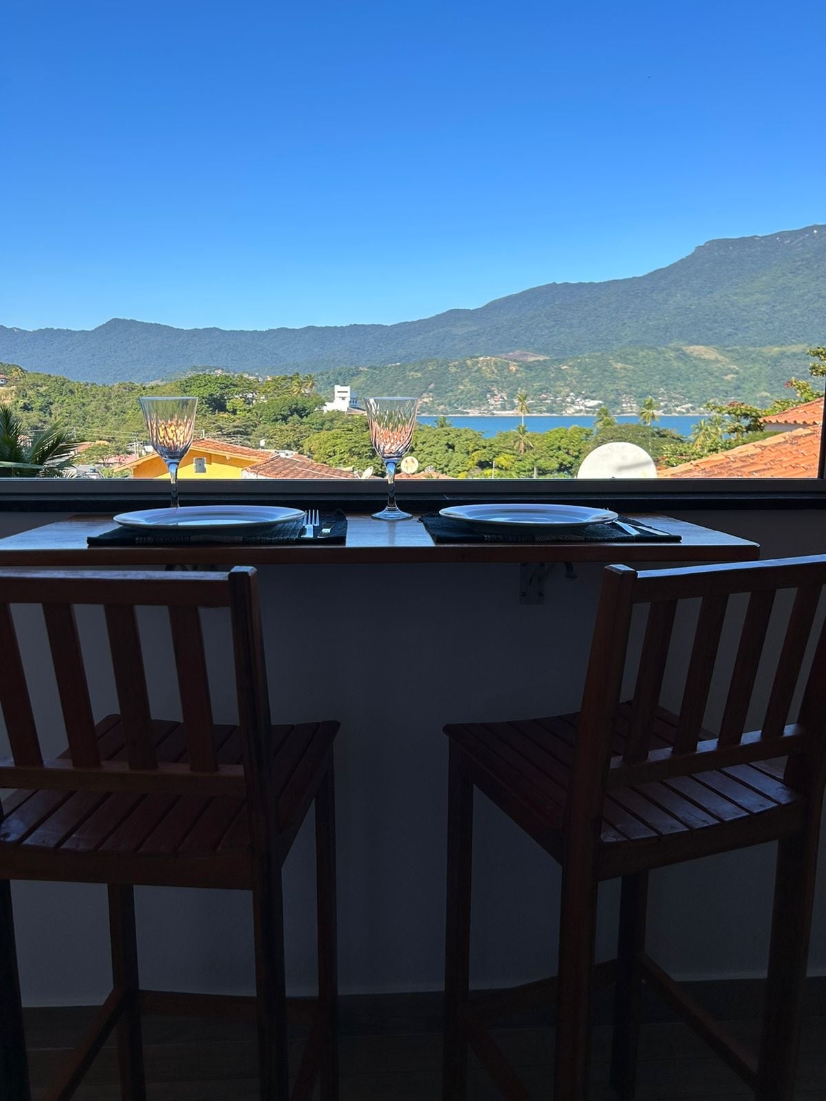 O studio duplo é ideal para casais ou famílias pequenas. Com uma vista incrível da sacada, é perfeito para um café da manhã, jantar ou somente apreciar um lindo pôr do sol. Bairro residencial com fácil acesso, asfaltado, a 10 minutos de carro, da balsa, mercado, hospital, farmácia e restaurantes. Para quem vem sem carro é preciso pegar alguma locomoção, pois a subida é íngreme e cansativa.