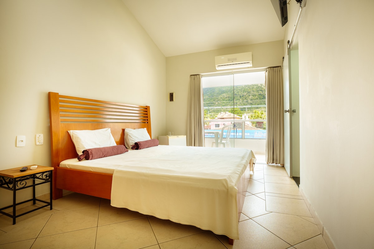 Style and Comfort! Breakfast included. Measuring 38m² and located on the upper floor, the Premium Room offers sophistication and comfort. Equipped with a Queen Size bed, Smart TV and Air Conditioning, pole dance, soaking tub, gas-heated shower, hairdryer, minibar, microwave, closet or coat racks, bathrobes and private bathroom. The Premium Room offers high-quality services, such as Alexa, daily cleaning and breakfast served on individual trays. Accommodates up to 2 people.