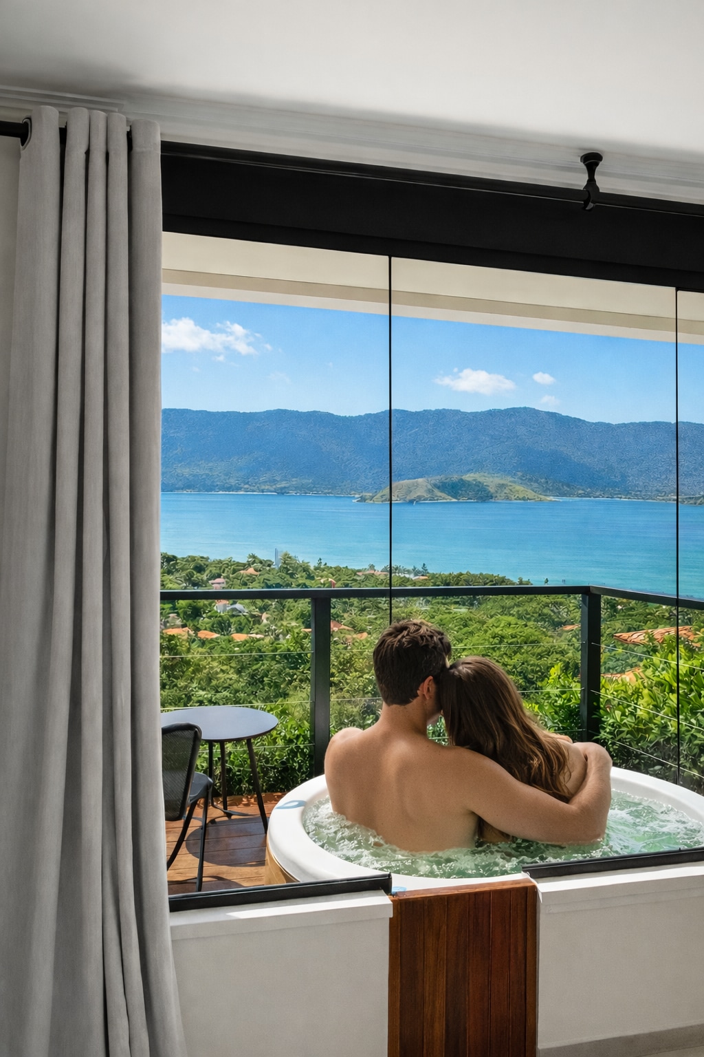 在按摩浴缸中欣赏浪漫海景