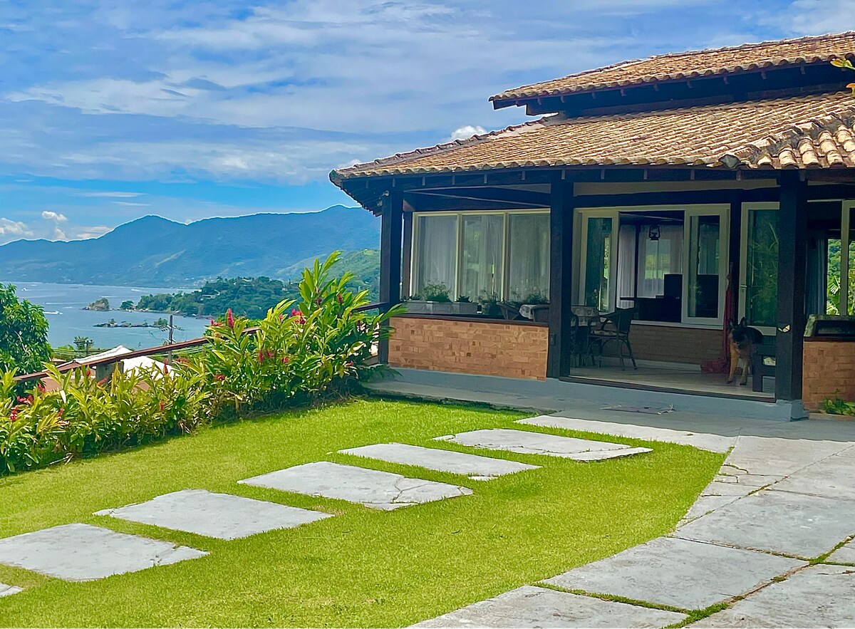 Casa em rua tranquila, localização privilegiada o que proporciona linda vista para o mar e para a mata. A vista da casa é realmente encantadora. Pôr do sol incrível ! Ambientes amplos, varanda integrada com a área interna através de portas de vidro. Decoração agradável. Cuidamos do espaço com muito carinho e atenção. Aqui a tranquilidade toma conta !