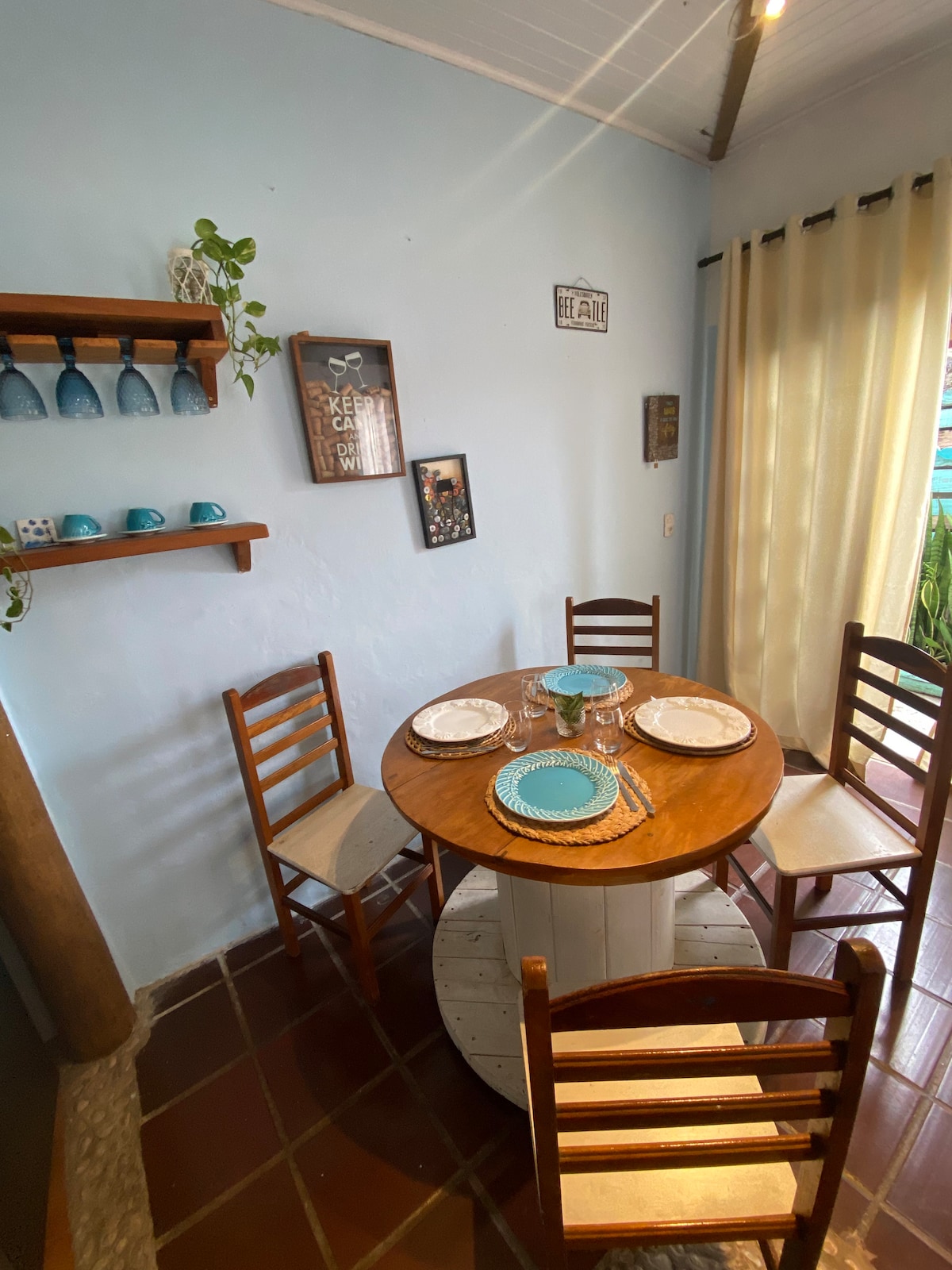 Casa aconchegante, a 200 metros da praia da Feiticeira, recém reformada, com um grande jardim e vista para o mar, arejada. Lareira para os dias frios. Uma churrasqueira no jardim. Espaço para estacionar. Roupa de cama e de banho. Cozinha equipada. No jardim, há árvores de fruta: acerolas, cocos, amoras, jambos, banana, açaí - se estiverem maduras, podem pegar fruta no pé. Observação: não são permitidos animais de estimação