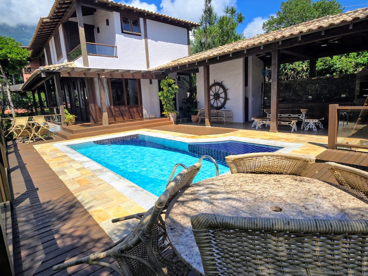 Casa charmosa e aconchegante com vista deslumbrante para o canal de Ilhabela, perfeita para relaxar e curtir com família ou amigos. A casa possui área gourmet com churrasqueira, piscina privativa e varanda com rede, ideal para apreciar a natureza e o visual incrível da ilha. 🚗 Estacionamento no local 📶 Wi-Fi Um refúgio perfeito para dias inesquecíveis em Ilhabela.