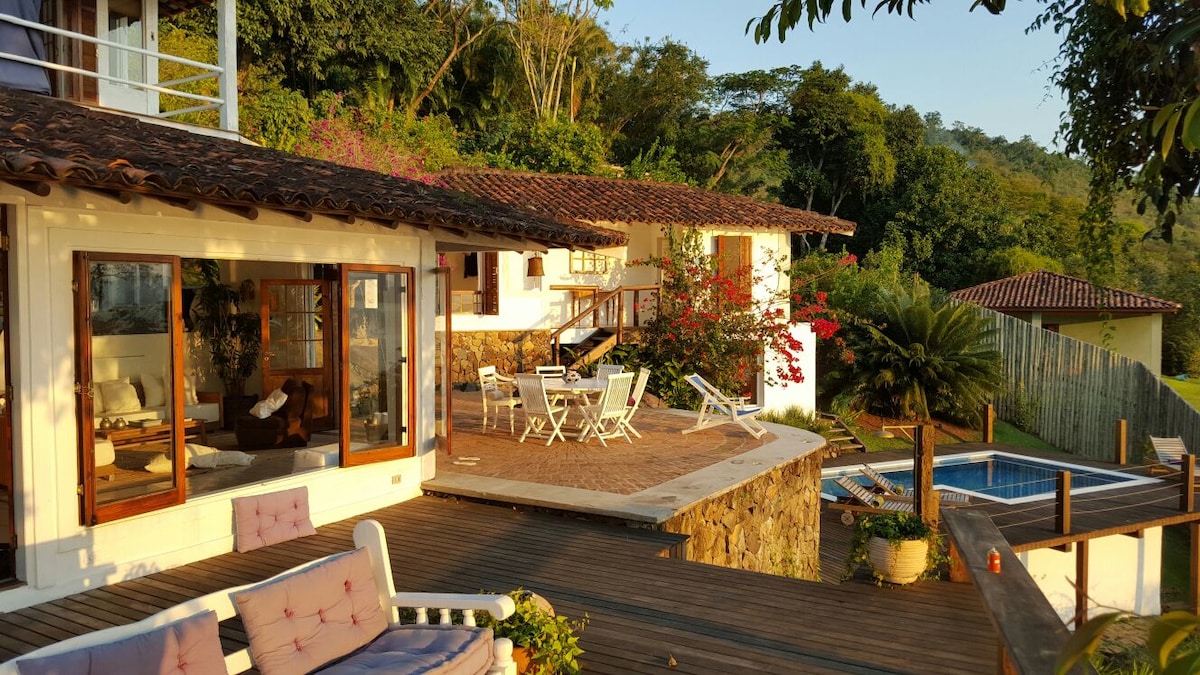 Localização: - 5 min da praia do Saco da Capela - 600m da vila histórica - 300m da Escola de Vela Lars Grael - Casa estilo vila italiana com jardim grande entre as dependências - Vista para o Pico do Baepi - 6 dormitórios (4 suítes) - Suíte master privativa com Jacuzzi e varanda - Ar condicionado nos dormitórios - Piscina grande com cascata - Deck com espreguiçadeiras - Espaço gourmet com churrasqueira e fogão industrial - 2 salas de TV - 2 bicicletas para os hóspedes - 2 vagas de garagem