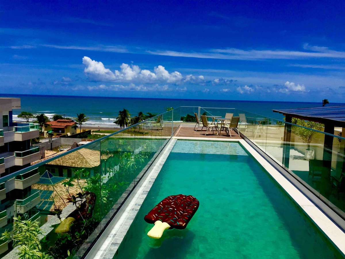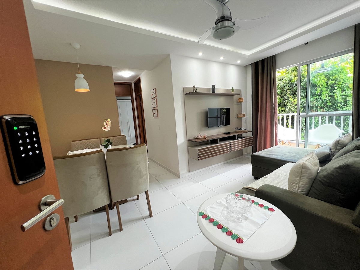 Apt novo, decorado e equipado para tornar sua hospedagem em Ilhéus inesquecível! Ao lado do hotel Aldeia da Praia, supermercado e em frente a praia. Condomínio fechado, salão de jogos, parque infantil, academia, piscina, rede de proteção para kids .Ar condicionado em 2 quartos e ventilador no 3° .Brinquedo de praia, cadeira de alimentação, prancha de praia para as crianças). P praia( cadeira, guarda sol, caixa térmica). Teremos prazer em te auxiliar em sua viagem! Se hospedar será uma delícia!