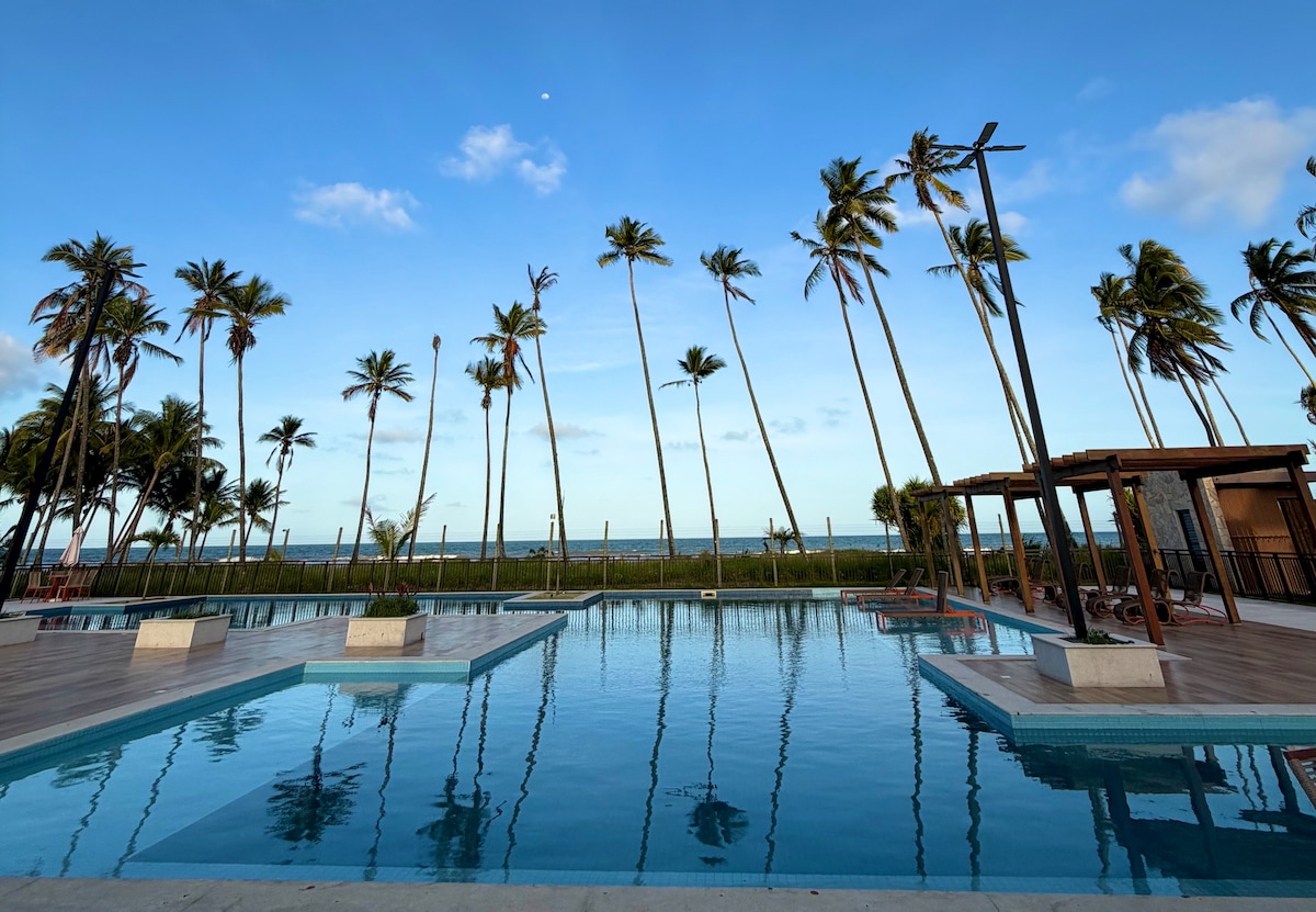 Welcome to your sophisticated seaside retreat! This apartment features 2 air-conditioned suites, a spacious living room with smart TV, and a fully equipped kitchen to provide an unforgettable experience. In the common areas, enjoy a refreshing swimming pool, modern gym, and an exclusive coworking space. Just steps from the beach, you'll find luxury, comfort, and breathtaking views. Book now and experience memorable days in Ilhéus!