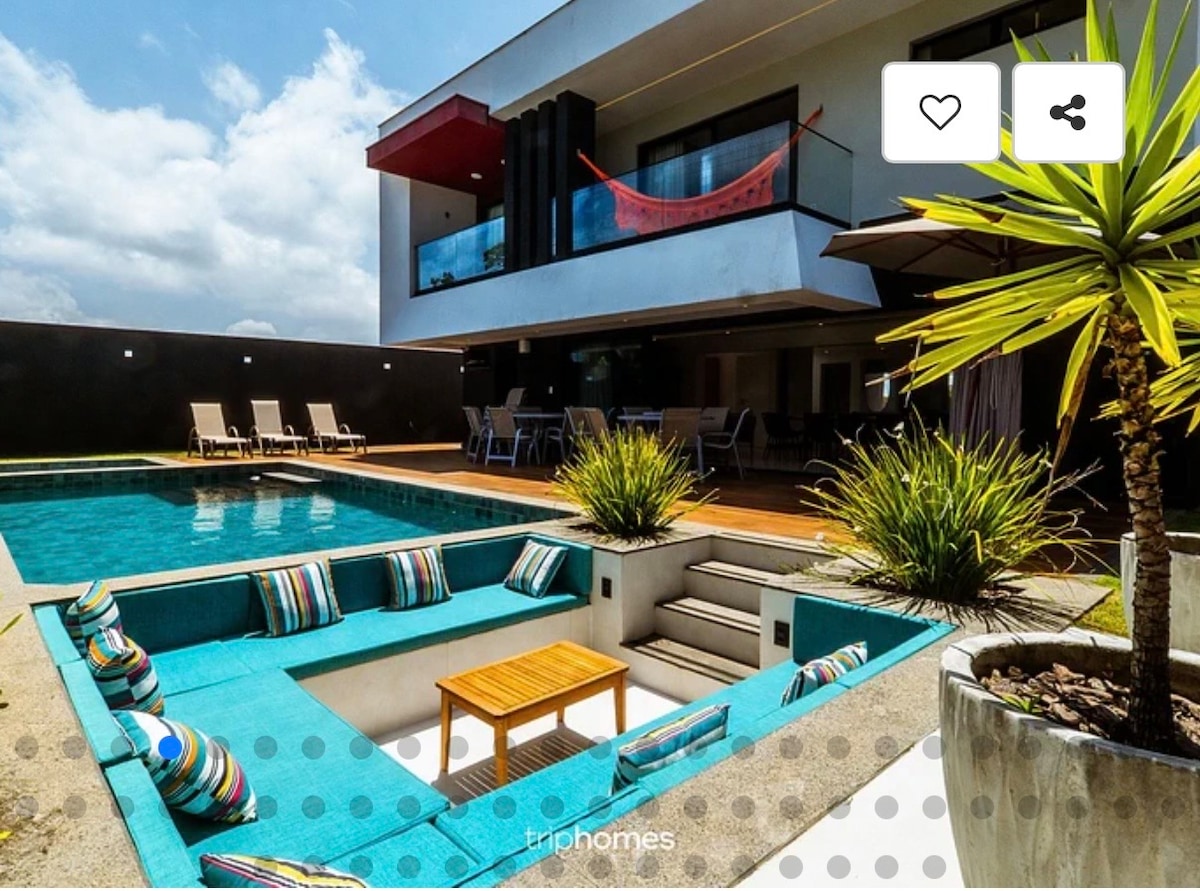 Modern and spacious house in a dated condominium, perfect for families and groups. Possui integrated social area with American kitchen, large living room, sinuca table and air-conditioned rooms. It has 5 rooms, including 4 comfortable suites. The external area has a private pool, deck, barbecue and space for outdoor refreshments. Ideal for those looking for comfort, privacy and practicality in Ilhéus.