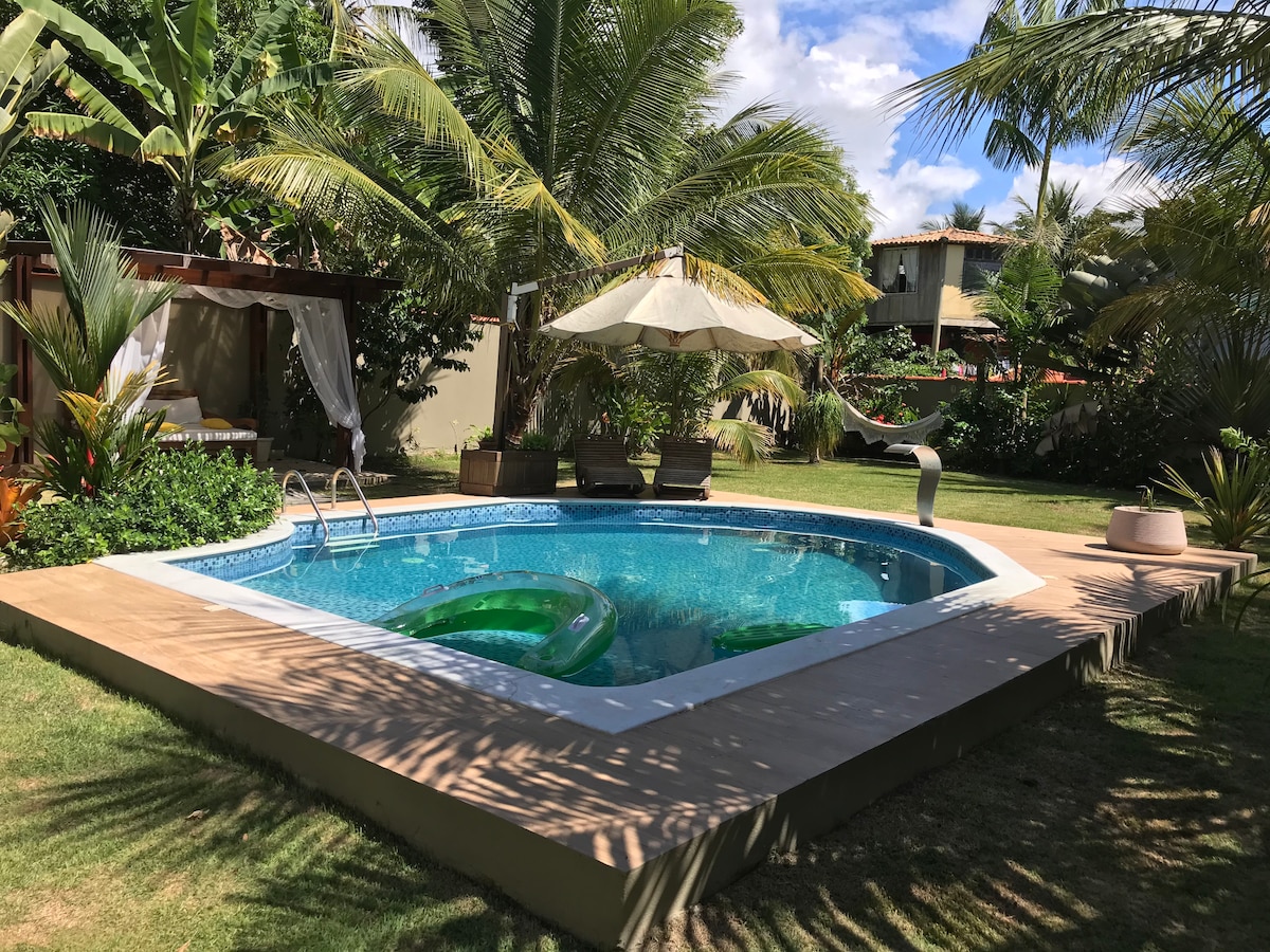 Paraíso pé na areia no litoral norte de Ilhéus! Acorde com o som das ondas e viva dias inesquecíveis, de frente para o mar a apenas 20 km de Ilhéus e 40 km de Itacaré. Destaques: • Piscina privativa e área gourmet exclusiva • Forno de pizza, churrasqueira e pergolado • Parquinho e casinha de boneca • Wi-Fi, ar-condicionado, conforto e segurança (câmeras em área de lazer e externa). • Amplo jardim e muito verde • E sim… somos pet friendly! Tudo isso com uso exclusivo da área de lazer.