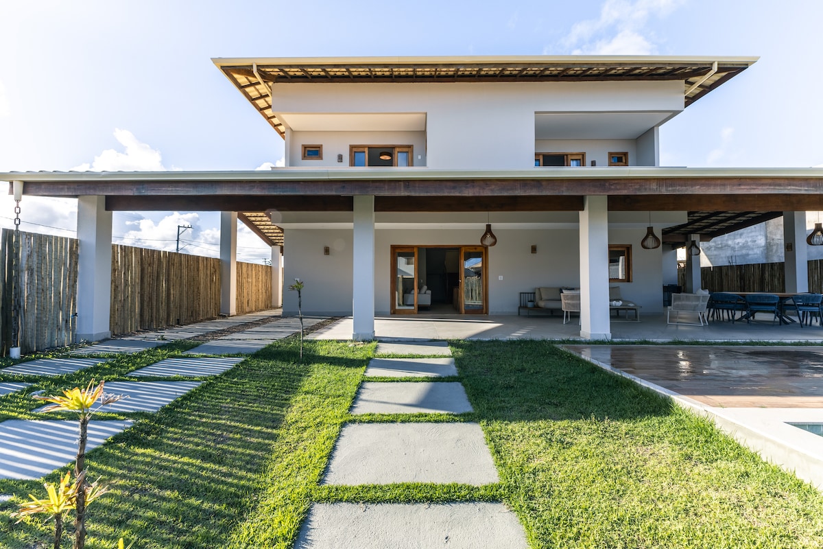 Sobrado em condomínio a beira-mar e acesso exclusivo a praia com: 3 suíte c/ ar condicionado wi-fi + tv de 55 polegadas cozinha completa e área de jantar Condomínio fechado com: piscina, estacionamento e quadra de beach tenis Ideal para até 6 pessoas, roupas de cama e toalhas de banho são fornecidas Oferecemos kit praia: cadeira de praia carrinho que vira mesa barraca rústica na praia 6 bicicletas mountain bike também estarão a sua disposição Estacionamento: 2 vagas