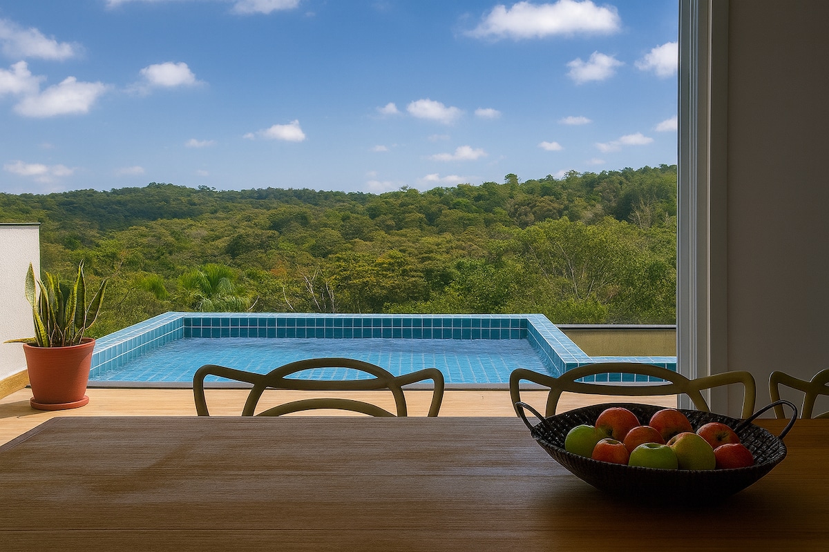 Imagine acordar com o som suave das ondas do mar, cercado por um jardim exuberante, onde pássaros cantam em árvores frutíferas próximas a um lago natural. A Casa Cacau é mais do que uma casa de temporada, é um santuário à beira-mar, projetado para proporcionar uma experiência sensorial inesquecível. Aqui o tempo desacelera e a natureza abraça.
