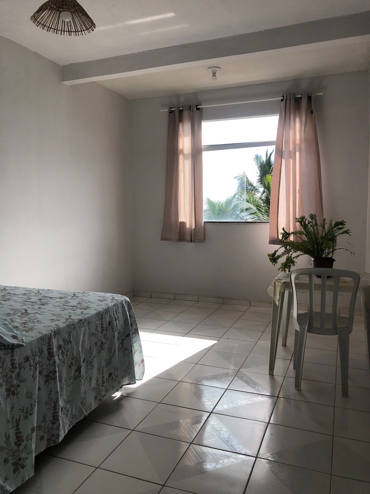 Apartamento na Orla de Sapetinga, considerado o Pôr do Sol mais bonito do Sul da Bahia. Localização estratégica: 8R$ de Uber para o centro, principais praias e pontos turísticos. Descrição: 2 quartos: uma suite com cama de casal e um com 2 camas de solteiro, banheiro comum, ampla sala de estar com TV, sala de jantar, varanda com meia vista para o rio e pôr do sol, cozinha e área de serviços completas+micro+lavadora, ar condicionado na suíte e sala, Wi-Fi. Piscina, Vaga de carro.