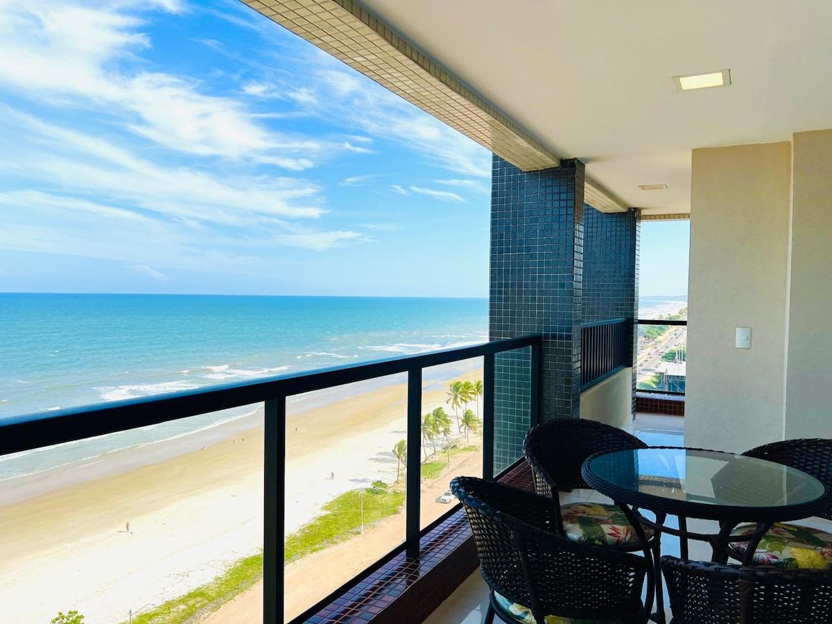 Localizado em frente à Praia, próximo à SmartFit, ao Atacarejo, além de cafés e restaurantes. Possui uma suíte com cama de casal “queen size”, outro quarto com duas camas de solteiro, ambos com ar condicionado split, TV por assinatura, “Wi-Fi”, cozinha, área de serviço e varanda, com vista para o mar de todos os quartos. Possui segurança eletrônica, elevador panorâmico, duas garagens para carros de médio porte, espaço kids, salão de jogos, espaço gourmet, academia, sauna e piscina.