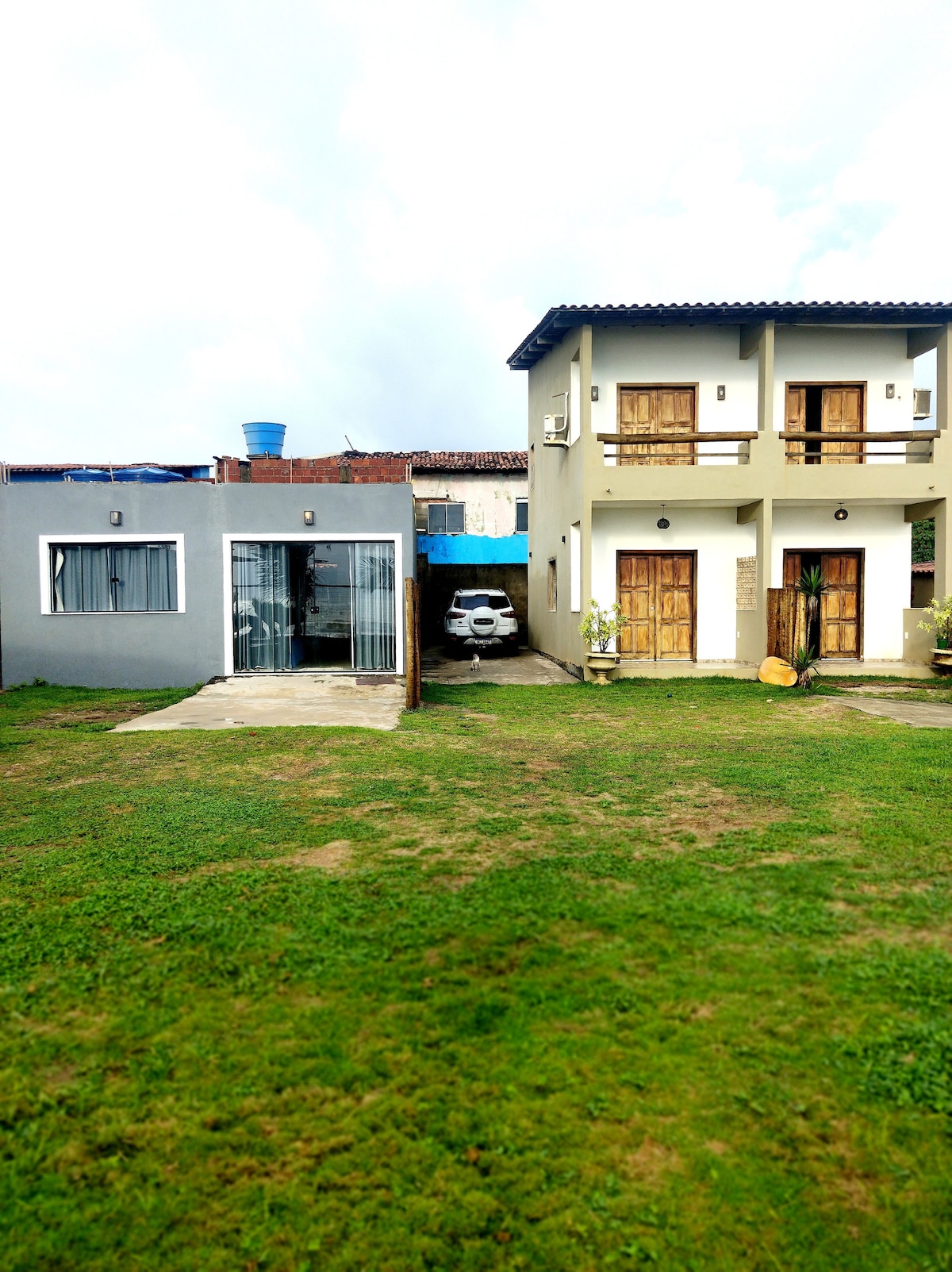 A nossa casa está a 70,00 m da praia, a varanda se estende por toda a frente da casa e termina em uma deliciosa área gourmet, churrasqueira e chuveirão. Um quintal de 1.200m2 totalmente cercado, com parquinho pra criançada ficar solta à vontade com toda a segurança, árvores frutíferas, coqueiros, e um imenso mar azul pra compor a paisagem deslumbrante. AR CONDICIONADO em todos os quartos ! INTERNET FIBRA ÓPTICA 100MG e estação de trabalho "beach office" com vista para o mar !