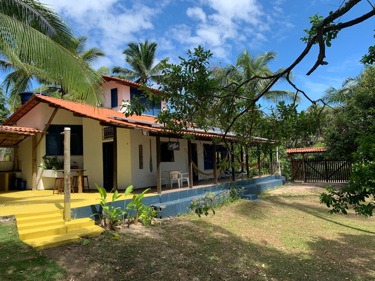 🌅 Casa arejada à beira mar, emoldurada por coqueiral. A praia é limpa, ampla,sossegada e ideal pra caminhadas. Possui dois quartos com ar condicionado ,três banheiros , mezanino,sala e cozinha integradas à varanda. Área de lavanderia e churrasqueira portátil. Todos os cômodos com vista para o mar.Pequeno comércio próximo que provê praticamente todas as necessidades . Localizada na rota do Cacau ,a 10 km de Ilheus e 54 de Itacaré . Lotação ideal até 5 pessoas, sendo possível acomodar até 10.