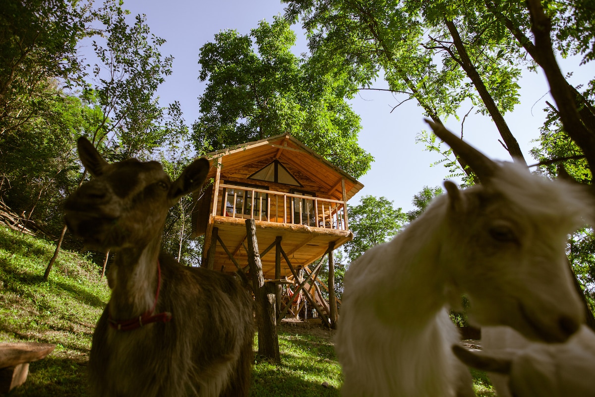 Perched among the trees, Loft Treehouse is an adults-only hideaway for peace, privacy, and reconnection. Designed for couples, it blends natural wood, soft light, and mountain air into a serene escape. Enjoy morning coffee on your balcony and quiet evenings by the fire. Features: Pellet stove • Fast Wi-Fi • Balcony • BBQ area • Café • Hiking trails • Parking