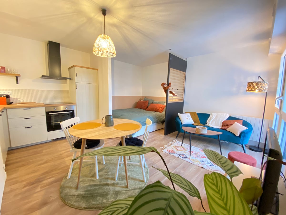 Large and bright apartment of 42 m², under the roof, in a quiet street in the centre of St-Servan. Ideally located, "close to everything", between the sea (200 m from the beaches), shops and restaurants (100 m from the centre) and 500 m from the town centre. Completely refurbished in early 2021. Mezannine with a bed of 160. Fully equipped kitchen. Independent bathroom (shower). It has all the facilities and comfort for an unforgettable stay in the Malouin country. Easy and free parking.