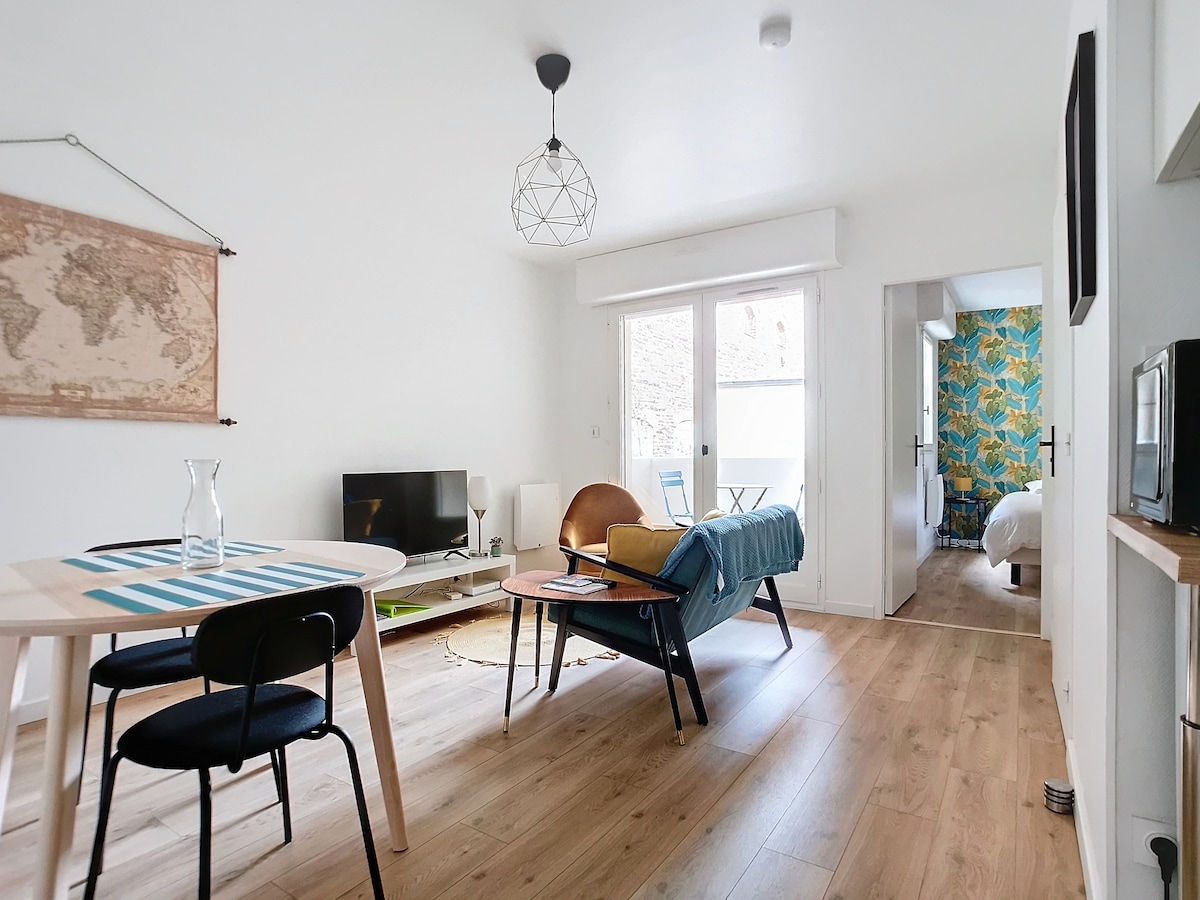 Au centre de Rennes, à 2 minutes à pied de la place Saint-Anne et du Centre des Congrès. Le logement est situé dans une résidence sécurisée, en retrait de la rue. Idéal pour 2 personnes avec une chambre séparée, un lit Queen size, un balcon. Proche du métro et à moins de 10 minutes de la gare SNCF. Vous pourrez explorer la ville à pied et profiter des nombreux restaurants et boutiques à proximité. Fêtes et animaux interdits. Non fumeur. Immeuble sous vidéo-surveillance.