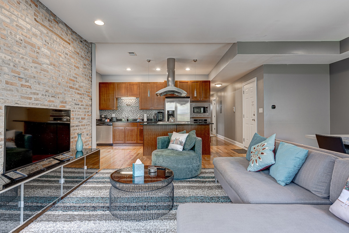 This studio apartment is in the perfect location in Chicago for getting to Downtown via the Blue Line L or to the Hot West Loop and Randolph street restaurant row. Walk to bars, shops, restaurants, coffee liquor stores and transportation with ease! You will love our spa baths, in unit laundry and full modern kitchens to make it feel like a home away from home. One of the best pizza spots in Chicago is only steps away!