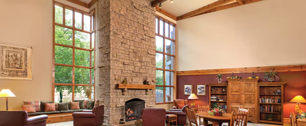 The T. Roosevelt Room provides a warm space on the lower level. Zero entry access is available. Enjoy your stay in this unique converted Carnegie Library built in 1915. The Carnegie is within walking distance of coffee shops, restaurants, parks, movie theatre, the Illinois River and local shops.