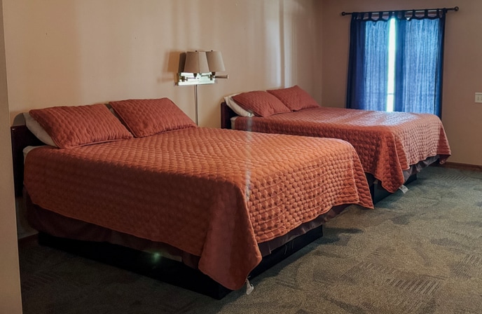Rustic 6-bedroom (hotel style) lodge in the heart of Shawnee National Forest. Each bedroom has its own private bathroom. Shared full kitchen, living room with a stone fireplace. Perfect for group getaways, riders, or retreats. Peaceful, scenic, and right on the trails The lodge is located on the peaceful grounds of Little Lusk Campground, surrounded by rolling hills, 3 ponds, pasture, and wooded trails. Whether you’re here to ride, hike, fish, or just relax—you’ll be right in the middle of it