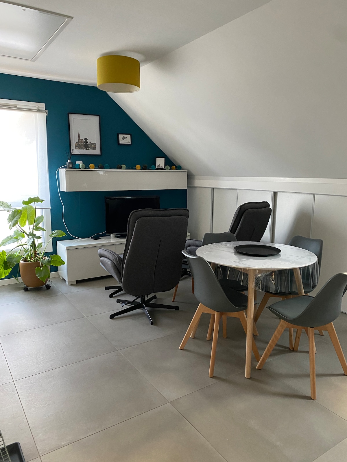 Le logement est situé dans la cour de ma propriété. À 15 minutes de Strasbourg en voiture. Le salon du rez-de-chaussée est agréable et frais en été. Dès les premiers frimas un poêle à granulés réchauffe de manière conviviale cet endroit où (dit-on) l'on se sent bien. À l'étage ('escalier en colimaçon) vous trouverez une grande suite parentale, un coin lavabo une douche ainsi qu'une petite chambre avec lit une place et 1 lit enfant (jusqu ‘à 6 ans).