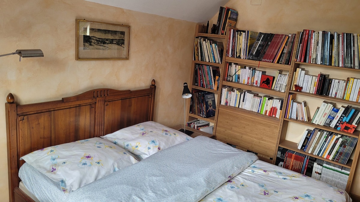 Spacious and comfortable room on the 1st floor of a beautiful apartment with a garden. Shared shower room and separate toilet. There are two of us living here. The atmosphere is simple and friendly. Plan your breakfast: I offer coffee, tea, or herbal tea. Note I have three nice cats. Thank your for considering the requested arrival time. Booking is for 1 person, for 18 ages and up. 2 nights minimum. (please, no guests)