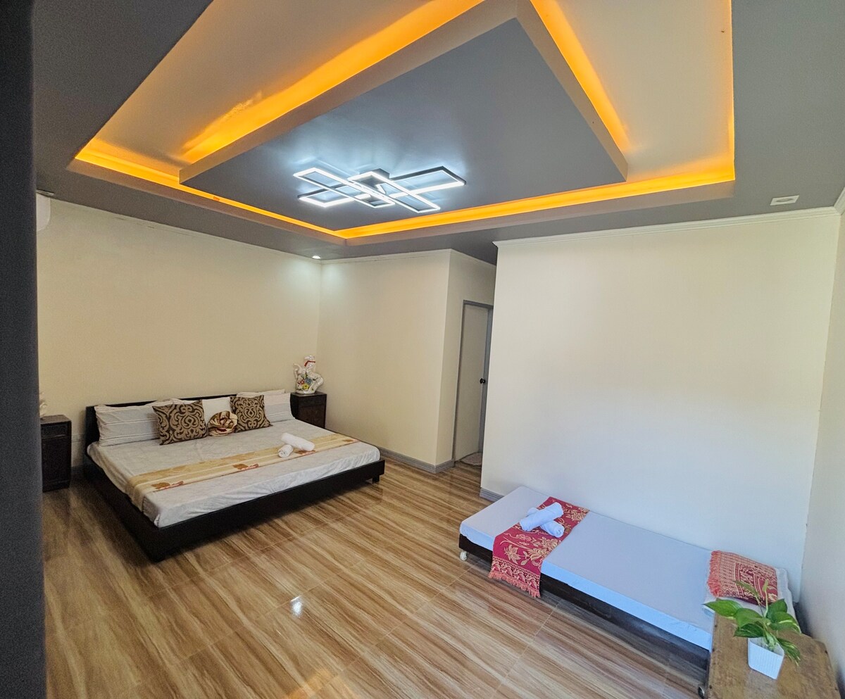 Relax with the whole family at this peaceful place to stay. Relax near the pond, feed the sulcatta turtle in the garden. The location is close to major business areas as well as tourist places in the province. Terminals for buses are just a few blocks away. Van rentals can be arranged few days before. The guesthouse has two single beds in the upper deck and one twin size sofa bed that can fit 3 people comfortably. An additional comforter can be provided free.
