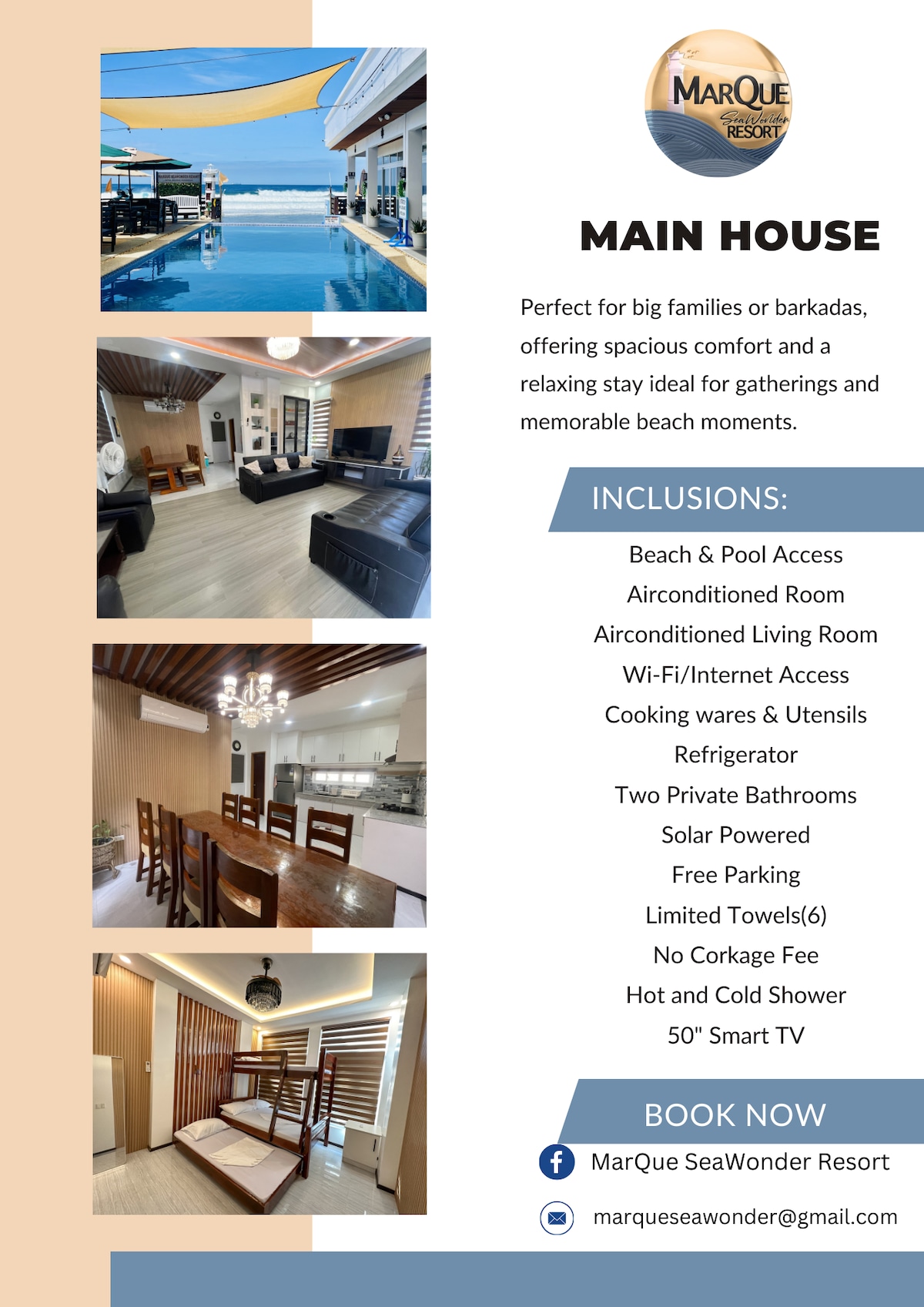 Hello guest! Our resort is beachfront with a pool and perfect for a relaxing, peaceful and quiet vacation! You will use the whole place privately and our in house caretaker is available to assist you. We are located at Barangay Becques, Tagudin Ilocos Sur. For parties and events, feel free to inquire about our promos and rates. :)