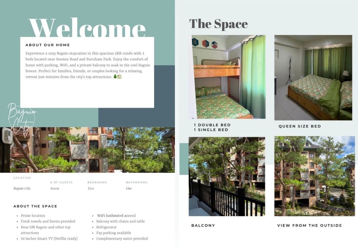 Outlook Ridge Retreat | Stunning Views, Cozy Comforts & Free Parking 👀This unit comfortably accommodates up to 10 guests with a minimal fee for each additional guest beyond 6🥰 Welcome to your relaxing escape in Baguio! This cozy 2-bedroom unit on Outlook Drive offers breathtaking mountain and pine tree views from the balcony and the building’s roof deck. Whether you’re here for nature, cool weather, or nearby attractions, this is your ideal home away from home☺️