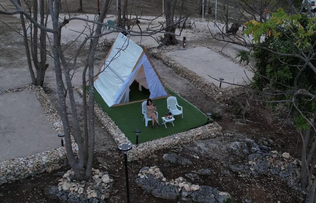 A great get a way on the beach! Family sized tent sleeps up to 6 guest! Common Showers/toilets. Swimming pool and free hi speed WIFI BBQ grill and fun to be had!