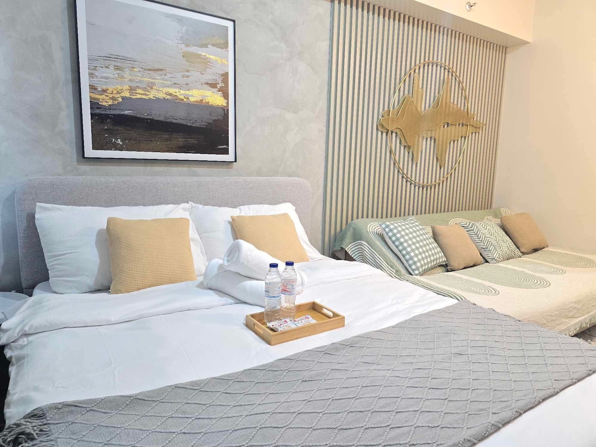 📢 PLEASE READ BEFORE BOOKING "Home Away from Home" – Studio Unit This cozy studio features 1 full/double size bed 🛏️, perfect for 2 people, plus an additional full/double size floor mattress (about 1 inch thick) 🛋️ that can comfortably accommodate 2 more guests. The extra mattress will only be set up if your party exceeds 2 guests. It’s your perfect urban sanctuary 🏙️, right in the heart of the vibrant Megaworld Complex! 🌟