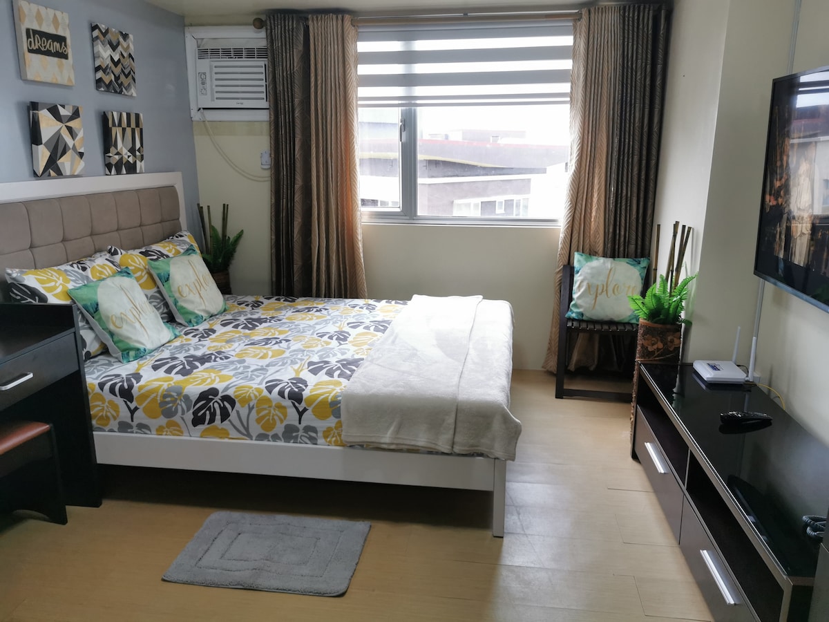 📢 PLEASE READ BEFORE BOOKING "Home Away from Home" – Studio Unit This cozy studio features 1 full/double size bed 🛏️, perfect for 2 people, plus an additional single size floor mattress (about 1 inch thick) 🛋️ that can comfortably accommodate 1 more guest. The extra mattress will only be set up if your party exceeds 2 guests. It’s your perfect urban sanctuary 🏙️, right in the heart of the vibrant Megaworld Complex! 🌟