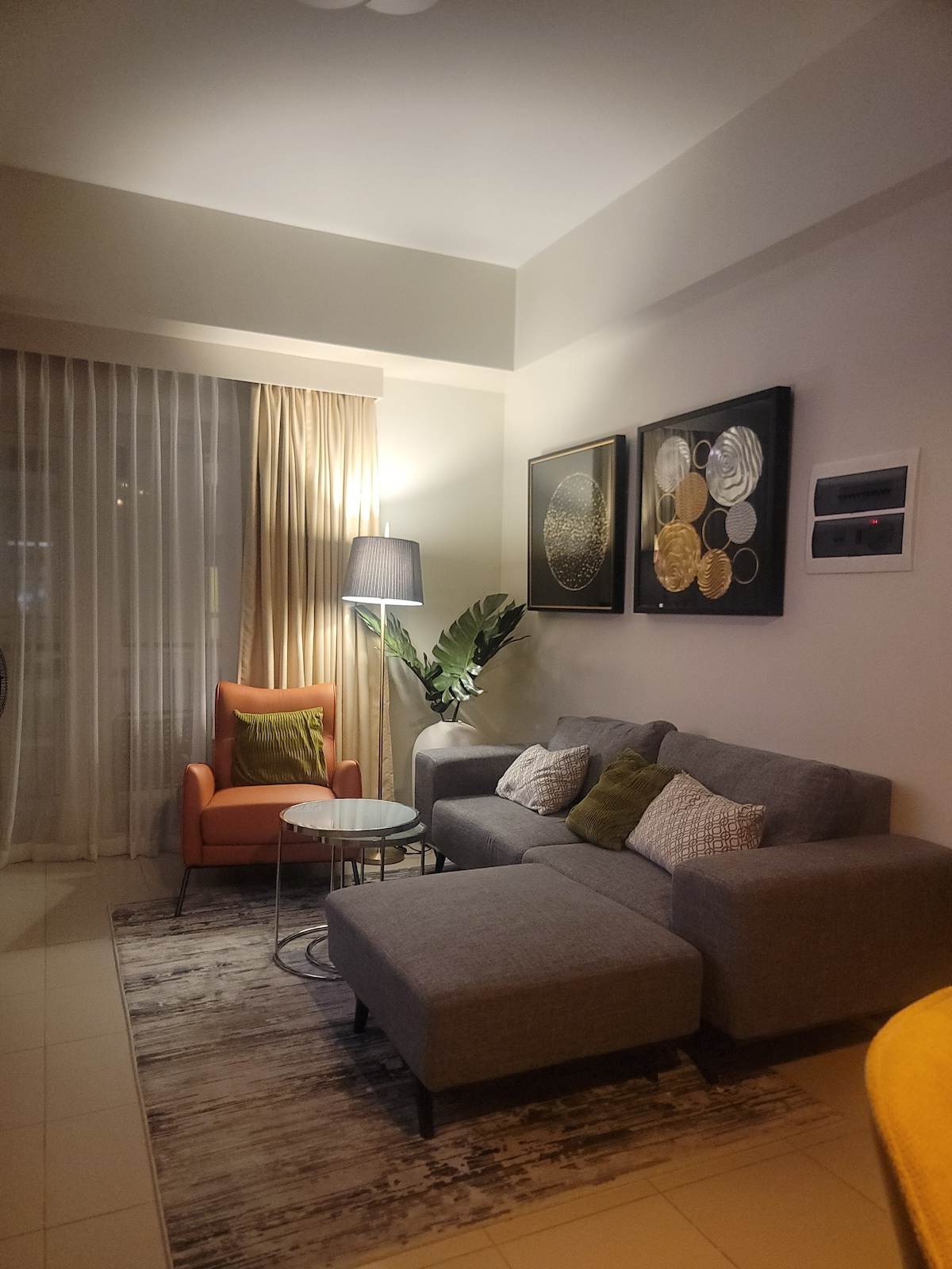 Skyline Retreat - Your Sunlit Escape Experience elevated living at Skyline Retreat, a high-floor unit in The Palladium, Megaworld. This sunny haven features high ceilings, a private balcony with stunning city and mountain views, and modern, fully furnished interiors. Enjoy exclusive access to a pool, gym, jacuzzi, and sky gardens. Steps from Festive Walk Mall and Iloilo’s top attractions, it’s the perfect blend of comfort and convenience. Book now for a relaxing stay above the city!