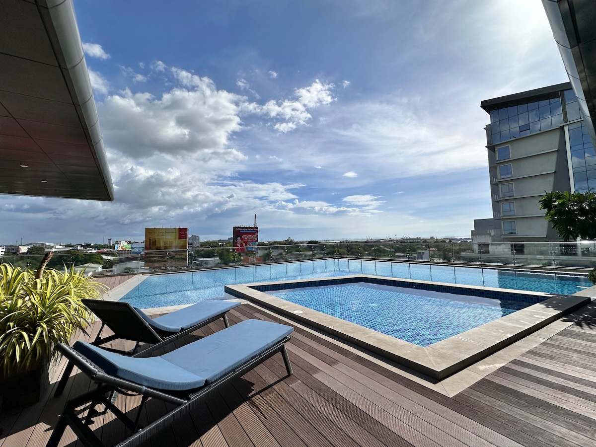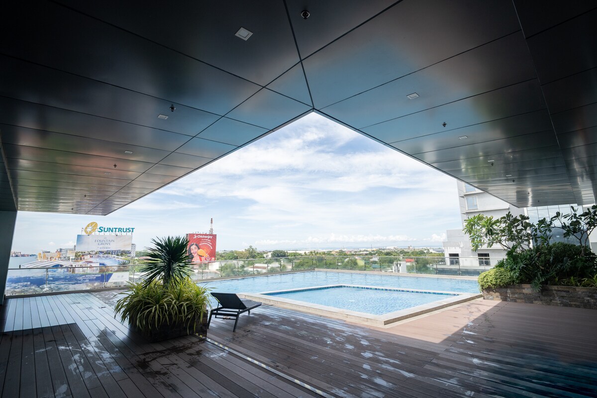 Studio in Bacolod City Center You get a comfy queen bed, 300Mbps WiFi, Smart TV with Netflix & Disney+, and a small kitchen with everything you need. Building has a pool, gym, game room, and café, laundry, massage spa, dental clinic, laboratory downstairs. We're close to SM, Ayala, The Ruins, and great restaurants. Airport is 20 minutes away. Self check-in with smart lock - super easy! Perfect for couples, friends, solo travelers, or work trips. Everything you need is here!