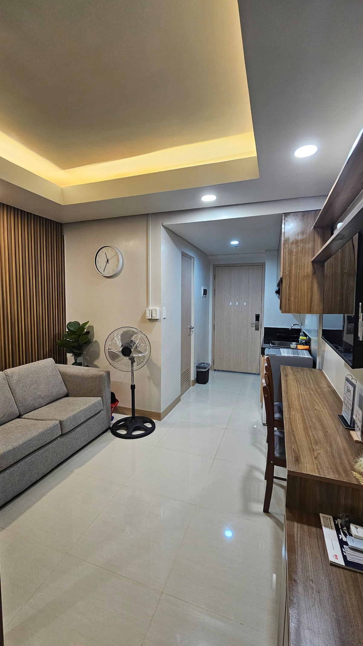 Welcome to this spacious and comfortable Airbnb home located near Bacolod's renowned Kyle's Eatery. With its high ceiling and cozy ambiance, this place offers plenty of extra room for a truly relaxing stay. Perfect for business travelers or families, this intimate accommodation features a staircase design, on a double height space complemented high window that fills the airy space with natural light. The classic furniture with accent mosaic wall adds a touch of elegance to the ambiance.