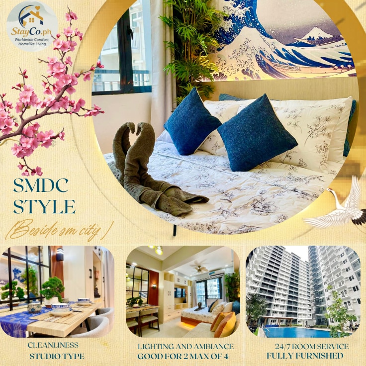 Spacious Fully furnished condo design perfect for family and staycation. Includes home furniture (sofa, Smart tv with Netflix, cable TV and fast internet, 6-seater dining table), full kitchen (rice cooker, induction cooker, range hood, electric water heater, dining sets and utensils, pots pans). 2 air conditions, Beds (king Size, Double, Single pull out bed). T&B (bidet, hot and cold). Drying cubicle for laundry on Roof top. Amenities: Pool, gym, billiards, play house for kids and a clubhouse.