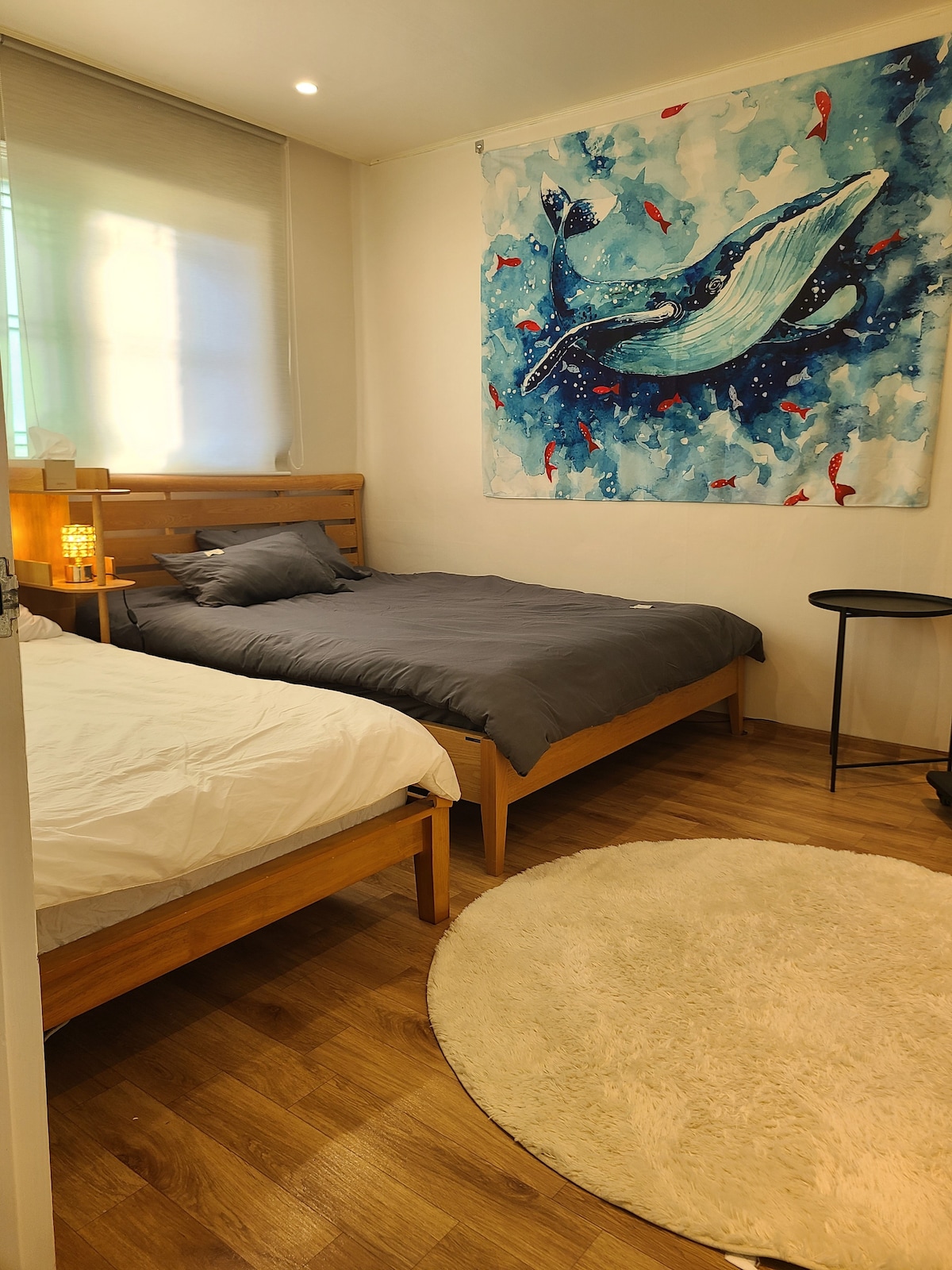 ● 위치뫅인은 일산 봄봄게스트하우스 검색하시면 확인 가능합니다. ●일산 게스트하우스 봄봄은 국립암센터/백마역 에서 도보 거리로 주변에 마트와 편의점, 음식점 등이 있어 생활하시기에 불편함이 없습니다. 저희 봄봄게스트하우스는 방 두칸과 주방겸 거실 그리고 욕실있는 독채를 단독으로 사용하는 독채 구조입니다 . 큰 방에 싱글침대 두 개가 있고 작은 방에 싱글침대 한 개가 있습니다. ● ●H.P: 공일공 이칠육오 삼팔삼팔 로 문의주시면 자세히 안냬해 드립니다.●●