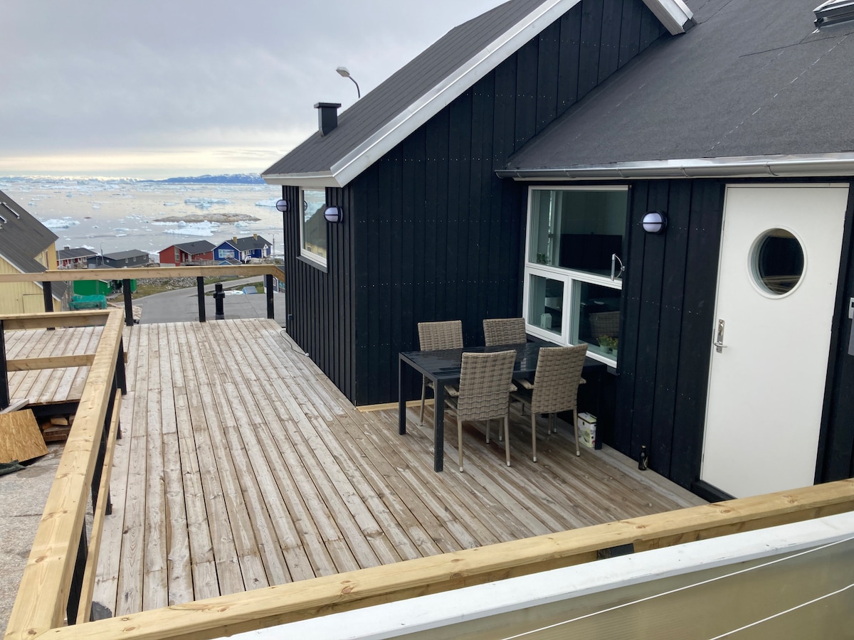Nyrenoveret bolig i hjertet af Ilulissats gamle bydel. Bo med smuk udsigt til isfjelde og tæt på alt: 25 m til indkøbscenter, 25 m til pizzeria og 30 m til wellness. Stor solrig terrasse med panoramaudsigt. Tagvindue med kig til Isfjorden – og om vinteren nordlys direkte fra sengen. Hyggelig, lys indretning med grønlandsk kunst og udsmykninger. Den perfekte base til at opleve Ilulissat. Vi glæder os til at byde jer velkommen til et uforglemmeligt ophold i Ilulissat