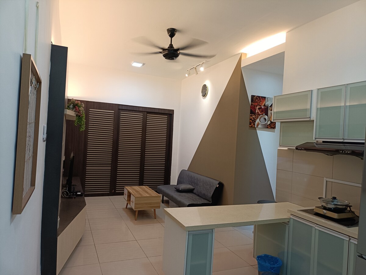 如果您想要一个近市区,却离开城市噪音的套房。我的房子将会是你理想的选择。距离城市中心5分钟的车程,您可以边坐车边欣赏沿路上的海景在到达热闹的城市。 位于10楼的房,想要每天醒来早晨看日出不是梦! Looking for a place near the city yet hated the city buzz? My place is the perfect place for you! Located just 5 minutes away from the main city centre (driving distance during off peak hour) It’s also just a 5 minutes walk to the beautiful Tanjung Lipat, where you can enjoy mesmerising sunrise and ocean breeze while having a walk. This studio is perfect for small group travelers and family.
