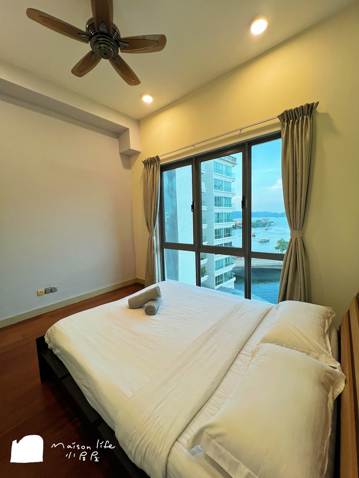 亚庇Jesselton Quay心愿民宿/角头单位/2房2卫/全海景夕阳/海岛码头/洗衣烘干一体机