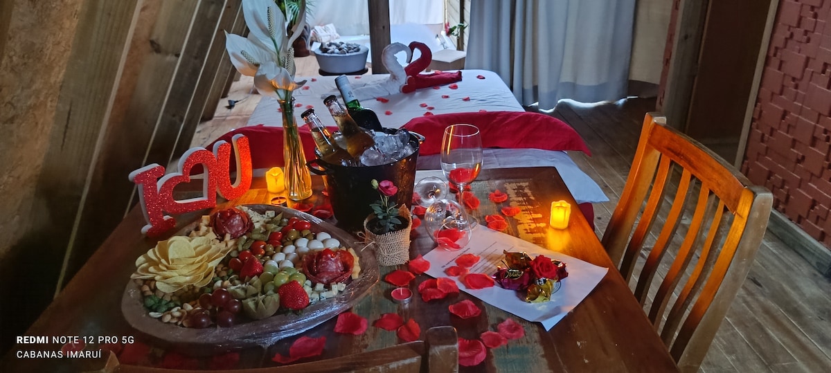 Cabanas Caminho das Vermelhas - um lugar com muita paz e tranquilidade em meio a natureza! São 3 Cabanas no mesmo pátio, mas com uma distância entre elas para privacidade dos hóspedes. Disponibilizamos de banheira de hidro, piscina, quadra de areia para Futvolei e Beach Tennis. Estamos em IMARUÍ/SC: - 20km de Imbituba - 28km da Praia do Rosa - 20km da Praia da Vila - 38km de Garopaba.
