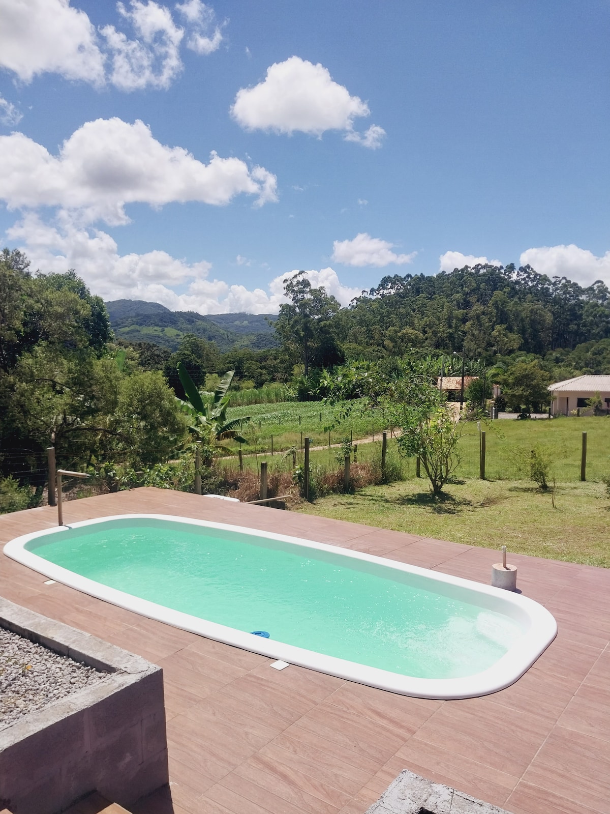 Curta uma badalada praia e ao final do dia, relaxe em um refúgio romântico em meio a natureza, cercado por um jardim florido com rosas, pássaros cantando suavemente nas árvores, criando uma trilha sonora natural. No centro, uma piscina,com água cristalina, uma banheira de imersão perfeita para um momento a dois. Tudo isso complementado por um ambiente acolhedor e íntimo, onde o casal pode se conectar.Esqueça suas preocupações, tudo isso há apenas 13 km das principais praias de Imbituba.