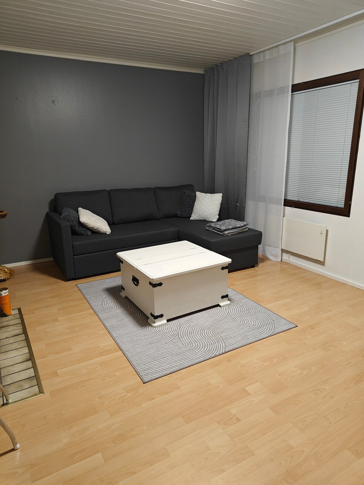 Апартамент является частью двухквартирного дома, имеет 1 спальню и гостиную совмещенную с кухней, террасу с мебелью для отдыха. Курение допускается только на террасе, в доме курить нельзя. На кухне есть все необходимое - плита, духовка, микроволновая печь, чайник, тостер, кофеварка, холодильник, полный набор посуды, посудомоечная машина. Для камина предоставляются дрова. Есть сауна и шкаф для сушки одежды. Постельное белье можно привезти с собой или взять в аренду. Цена 12 евро на человека.