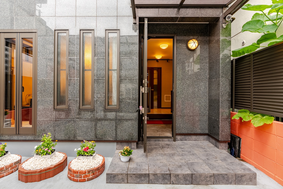 民宿,不等于廉价。打破对民宿的传统定位,我们能给予您的更是一份家的温暖,超越五星级酒店的服务! 1. 我们致力打造"吃喝玩乐住行"一站式服务,让您不虚此行。 2. 房屋内的设备、展示品、用品均为5星级标准。 3. 我们的清扫工作由"日本第一"之称的专业清洁公司负责,卫生质量严格把关。 4. 民宿周边有许多"隐家"餐厅,都是当地人有口皆碑,爱不释手的美食。我们可为您推荐及免费预约。所谓"酒香不怕巷子深",在享受高性价比的同时,相信也一定能满足您的味蕾,让您品尝到别具一格的、舌尖上的"大阪"。 坐落于大阪市中心(城东区),建立于明治42年(1909年)。第二次世界大战时,在空袭中遗留下来的为数不多的独立独户。于2015年由日本知名设计师设计并装潢,占地面积150平米,闹中取静。房屋外观优雅大气,内饰装潢及设施均采用现代化设备。历史文化与现代时尚的两两结合,无论是文化体验,还是宽敞舒适,都是大阪市内屈指可数的高级和风旅荘。相信这里一定会是您的不二选择! 我们在设计上追求人性化,整套房子有两处卫生间并且与洗漱区,大浴场实现三室分离,确保多人入住时,有独立空间,干净卫生的环境。