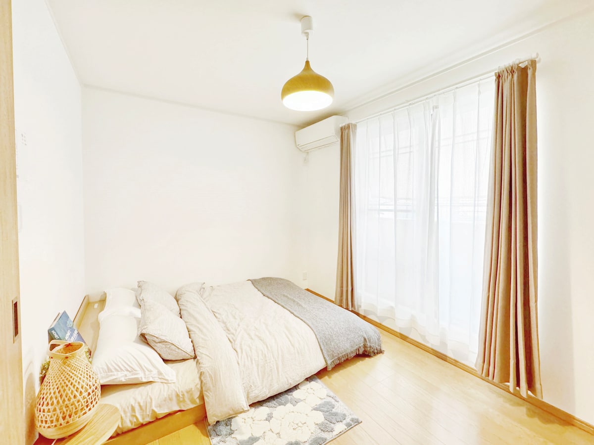 MUJI风格新建独栋94平/难波&日本桥&鹤桥&黑门市场直达8-10分钟/8床5卧室/最多12人